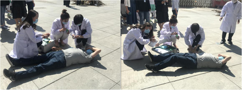 在模擬火災救援現(xiàn)場中發(fā)現(xiàn)被困人員,由應急救援隊將被困人員從火場中救出并帶至安全區(qū),由醫(yī)療救護組對傷員進行救治及轉(zhuǎn)移。