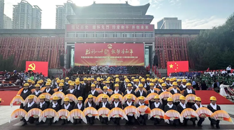 9月5日上午,勝利八十載 放歌頌和平——青海省紀(jì)念中國人民抗日戰(zhàn)爭暨世界反法西斯戰(zhàn)爭勝利八十周年群眾歌詠大會在新寧廣場隆重舉行。由省物產(chǎn)集團(tuán)80名職工組成的合唱方陣代表全省企業(yè)參加演出活動。集團(tuán)黨委書記、董事長劉玲,集團(tuán)黨委專職副書記、工會主席魏廷強參加紀(jì)念大會。